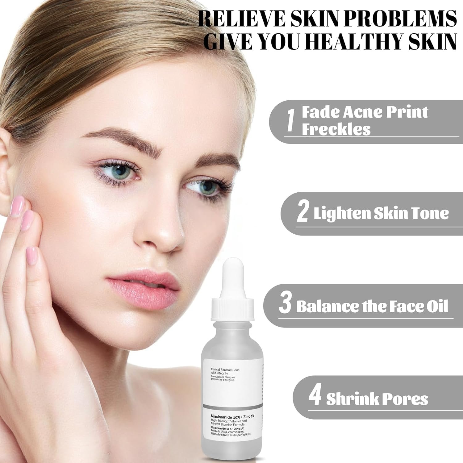 Enriched with 1% zinc, this anti-aging serum effectively minimizes the appearance of enlarged pores, balances oil production, and combats common blemishes like blackheads and acne. Its lightweight and non-greasy texture make it suitable for all skin types, including sensitive or dry skin, providing long-lasting hydration and smoothness without any sticky residue.
