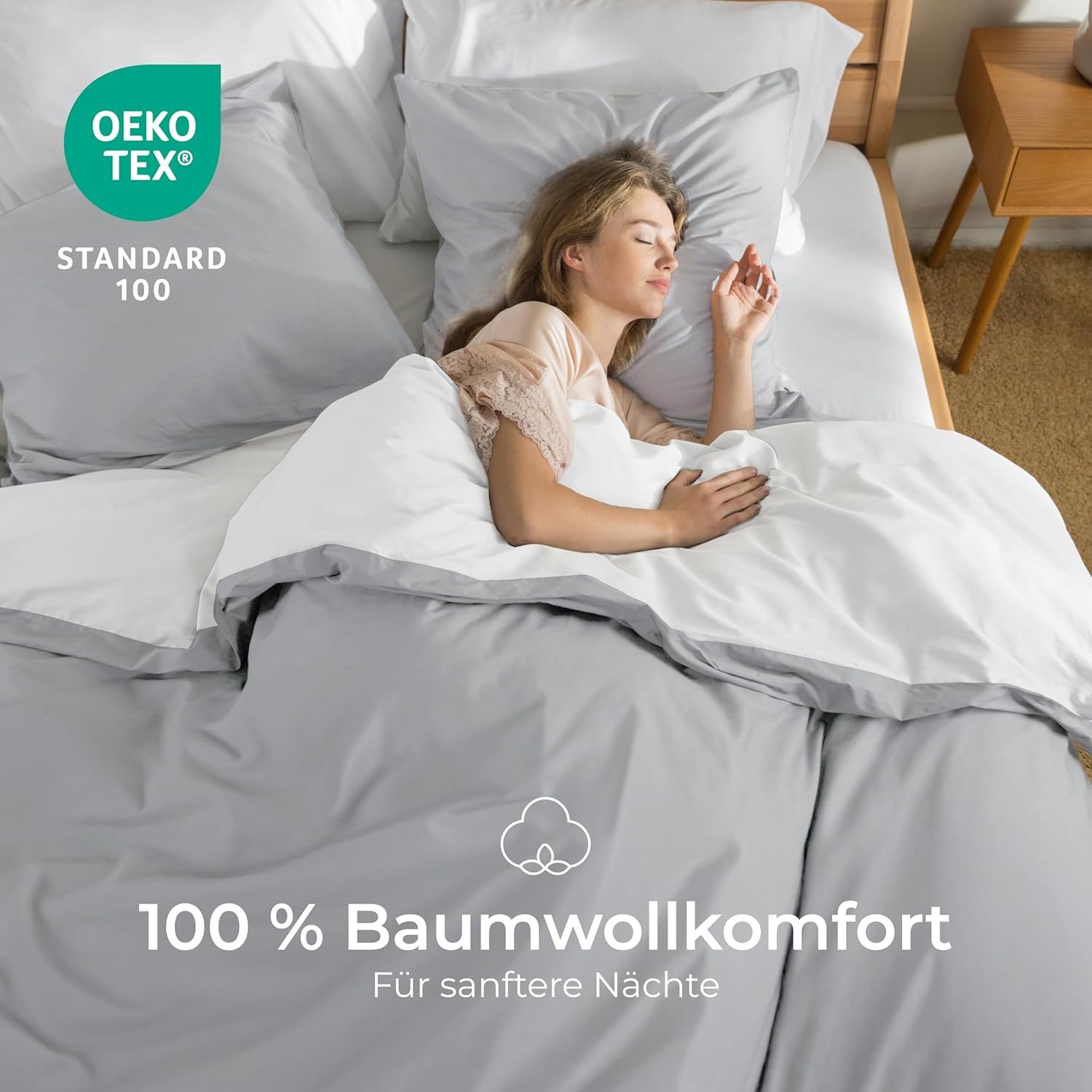 Cotton bedding for comfort and quality – Our cotton percale bedding (155×220 cm) impresses with its soft feel, breathability, and durability. For pleasant nights – all year round.